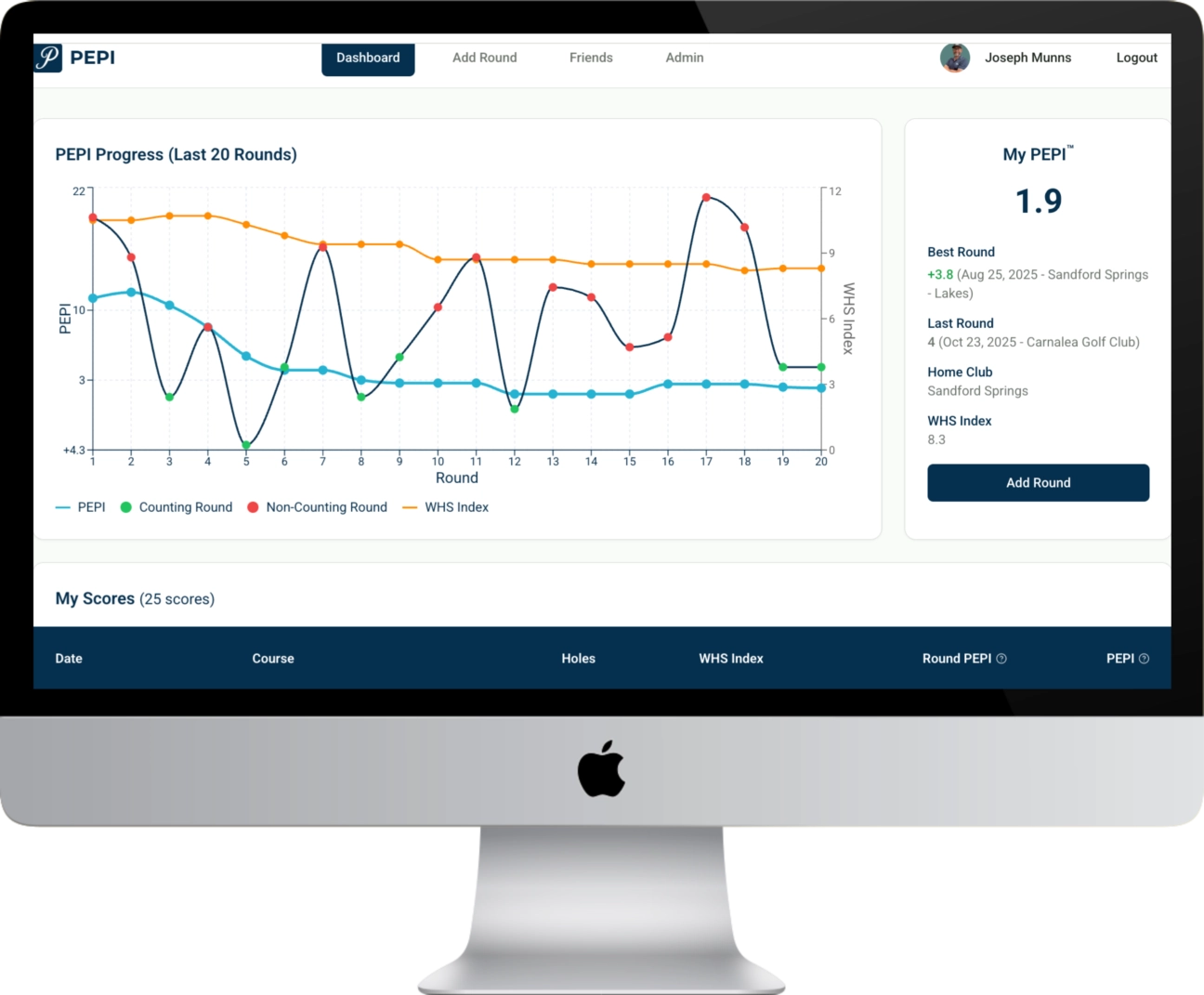 - After your round, PEPI calculates your Round PEPI - the equivalent handicap index you putted to that day.